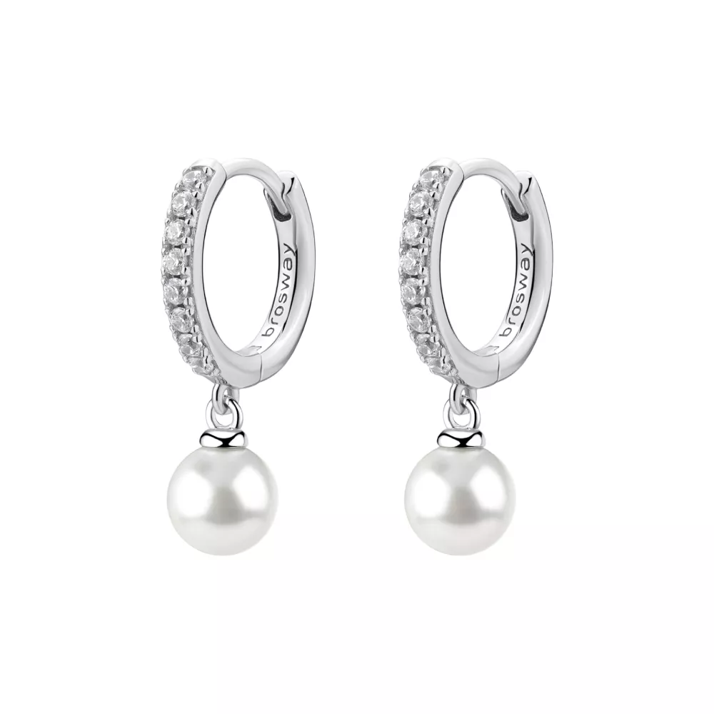 Brosway Fancy ženske minđuše veličine 25mm u obliku obruča sa priveskom, izrađene od rodinisanog srebra, ukrašene biserima i prozirnim kubnim cirkonima. Elegantne i ženstvene, savršene su za posebne prilike ili svakodnevni sofisticirani izgled.