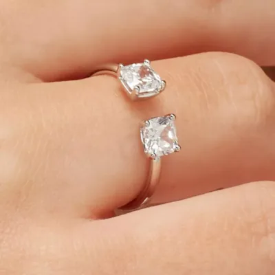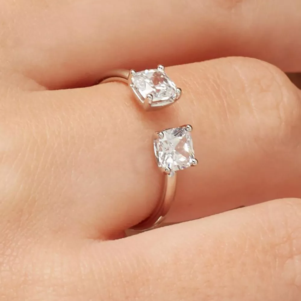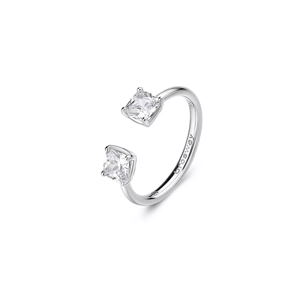 Brosway ženski prsten od srebra iz kolekcije Fancy sa otvorenim krajevima koji na sebi imaju po jedan providni cirkon kvadratnog oblika.