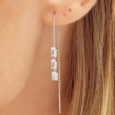 Brosway Fancy jedna viseća minđuša od srebra – lančić i tri providna baget cirkona. Veličina minđuše 10cm