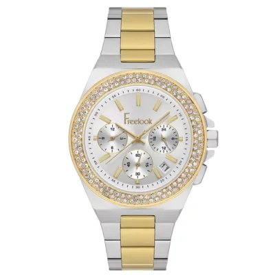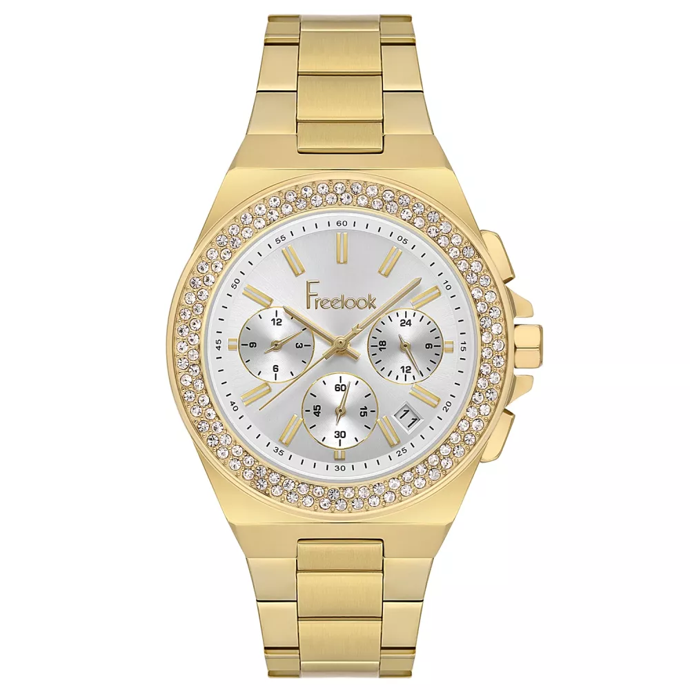 Unapredite svoju kolekciju aksesoara uz ovaj hronograf sat iz kolekcije Freelook. Srebrni cifer sa prikazom datuma, 12/24 i dual time i metalna narukvica zlatne boje ovog ženskog sata pružaju visok kvalitet i lagan osećaj na ruci. Dizajniran do savršenstva, ovaj sat će se odlično uklopiti kako uz formalne, tako i uz ležerne odevne kombinacije..
