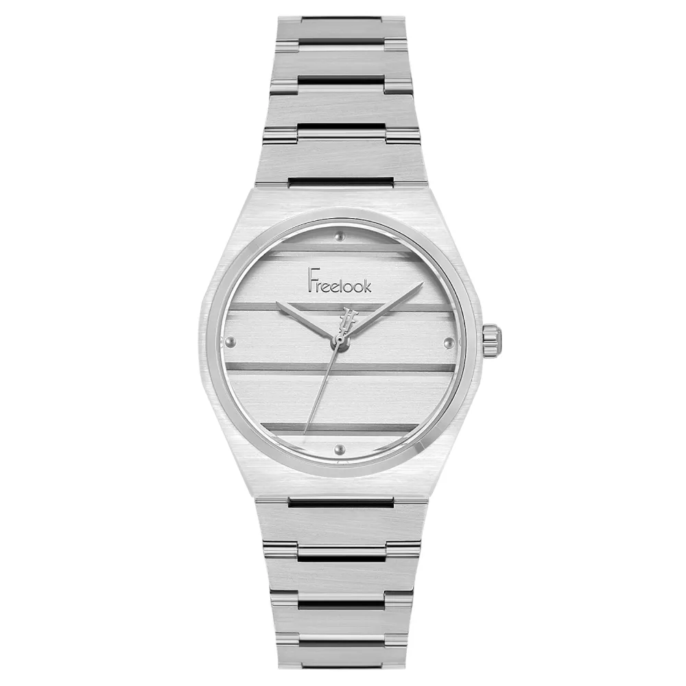 Iz kolekcije Jolie dolazi klasični ženski ručni sat Freelook, koji odiše jednostavnošću i elegancijom. Ovaj model je izrađen od nerđajućeg čelika i zaštićen otpornim mineralnim staklom, čime je obezbeđena dugotrajnost i pouzdanost. Sat poseduje analogni displej u srebrnoj nijansi, sa prefinjenim srebrnastim detaljima i originalnim dizajnerskim pristupom. Pokreće ga precizan kvarcni mehanizam, dok prečnik kućišta od 32 mm savršeno pristaje na svaku žensku ruku. Model je vodootporan do 5 ATM, što omogućava bezbrižno pranje ruku, dok se izbegava veće izlaganje vodi.