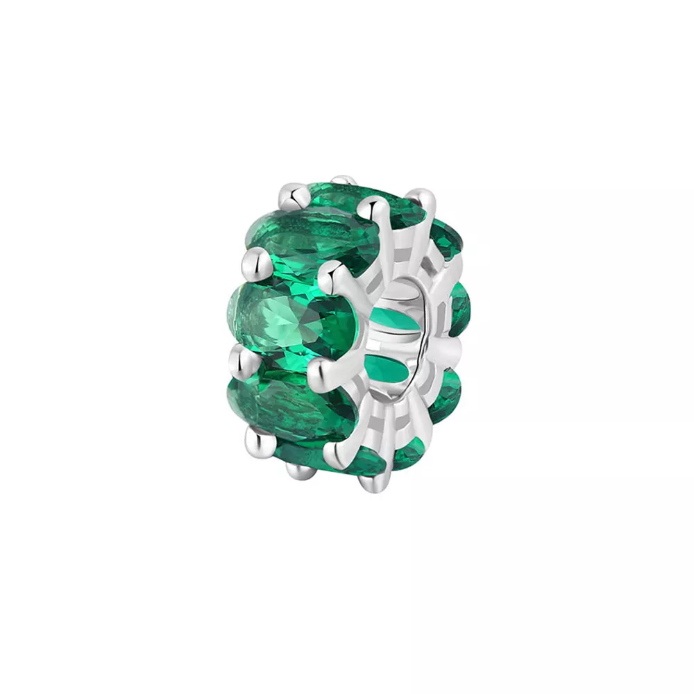 Privezak od srebra obložen rodijumom sa zelenim cirkonima ovalnog oblika. Veličina priveska 11mm