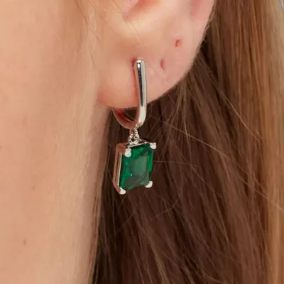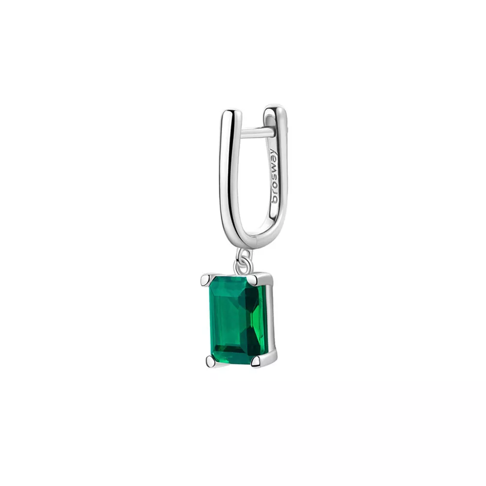 Brosway Fancy jedna minđuša od srebra – alkica od srebra i viseći privezak zeleni baget cirkon. Veličina minđuše 24mm