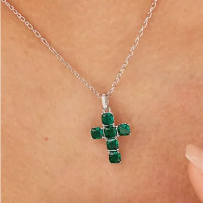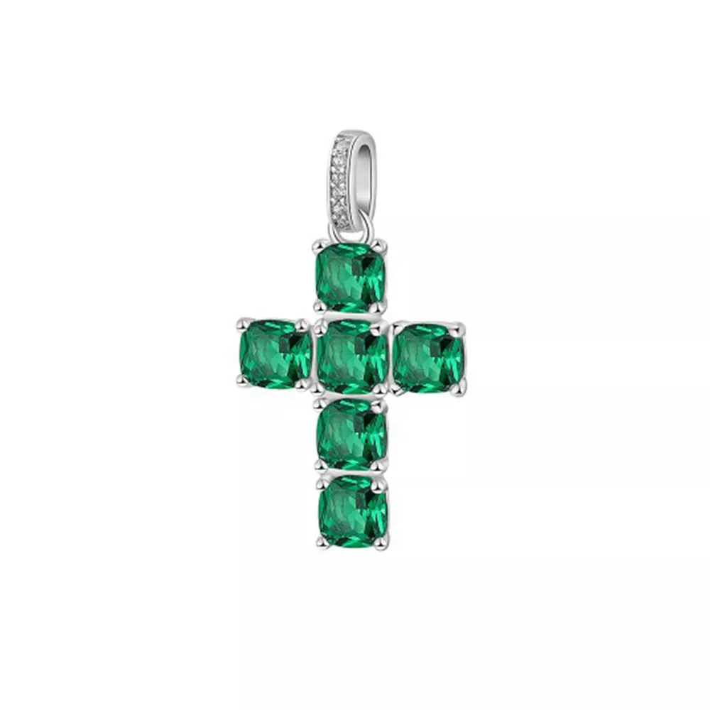 Brosway Fancy ženski privezak u obliku krsta od srebra sa zelenim kvadratnim cirkonima. Veličina priveska 23mm