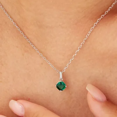 Privezak od srebra sa zelenim cirkonom na alkici i sa providnim cirkonima. Veličina priveska 13mm