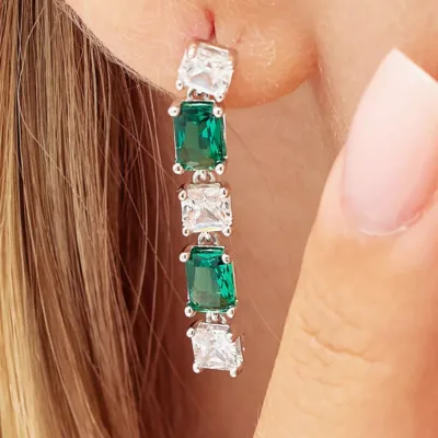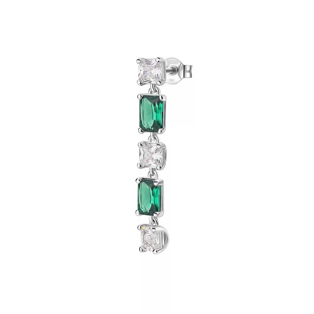 Brosway Fancy jedna viseća minđuša od srebra sa providnim i zelenim kvadratnim i baget cirkonima. Dužina minđuše 3cm