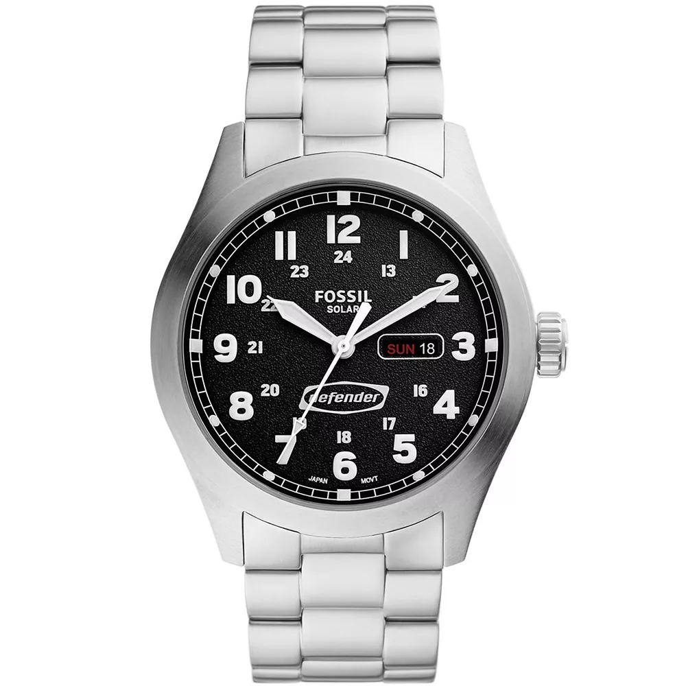 Muški ručni sat brenda Fossil iz kolekcije Defender. Kućište je izrađeno od kvalitetnog nerđajućeg čelika srebrne boje sa solarnim mehanizmom. Brojčanik crne boje ima suptilnu teksturu, prikaz datuma i srebrne detalje. Dolazi sa čeličnom narukvicom u boji srebra koja ostavlja snažan utisak.
