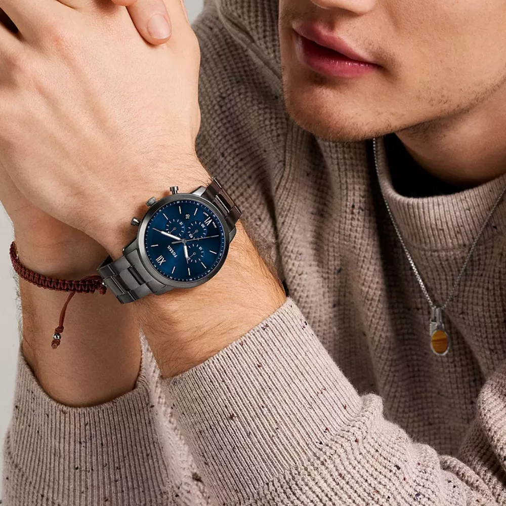 Ovaj hronograf kombinuje elemente iz mid-century arhitekture sa savremenim detaljima. Minimalistički brojčanik u dubokoj plavoj boji sa sunray efektom savršeno se usklađuje sa rezbarenim kućištem u gunmetal nijansi, stvarajući balansiran i elegantan izgled. Domed mineralno staklo štiti brojčanik, dok precizan japanski mehanizam osigurava tačnost i pouzdanost. Ovaj sat je pravi izbor za ljubitelje dizajna i preciznosti, donoseći ikoničan stil koji traje.