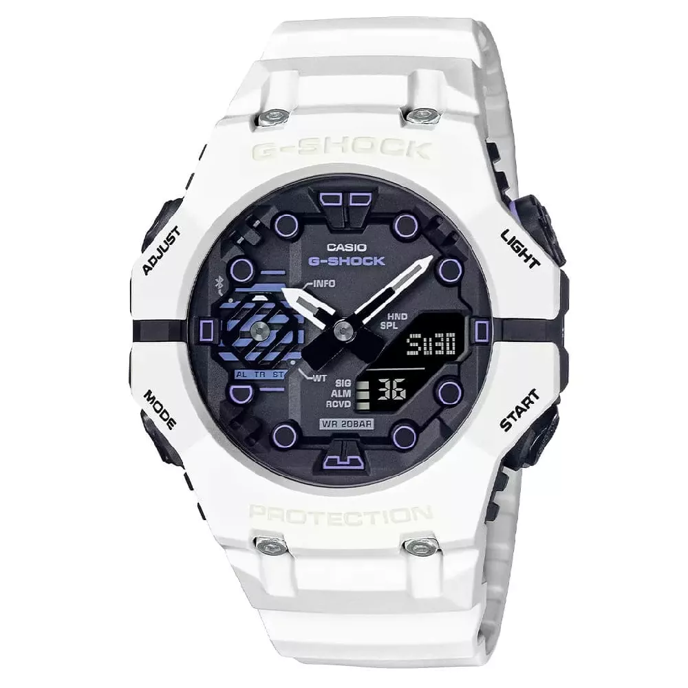 Inspirisan naučno-fantastikom, oštar i čist beli dizajn naglašen je dodirima plave i ljubičaste. Okvir kućišta je odštampan bojom koja svetli u mraku zbog čega se logotip G-SHOCK pojavljuje u mraku.