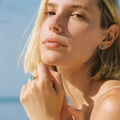 Lecarre minđuše su vrhunski komad luksuznog nakita koji kombinuje besprekornu izradu i elegantan dizajn. Izrađene od 18k zlata i poseduje atraktivan tirkizan topaz.