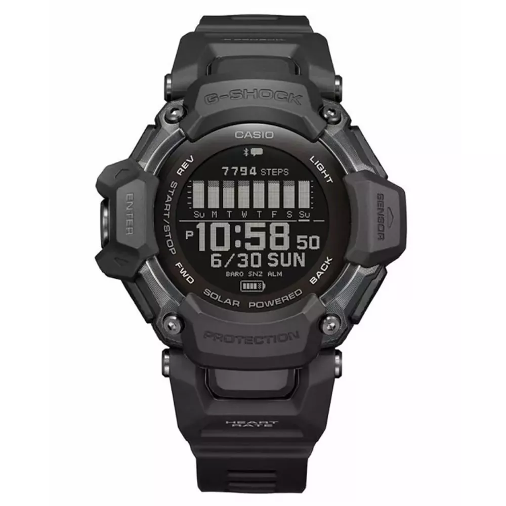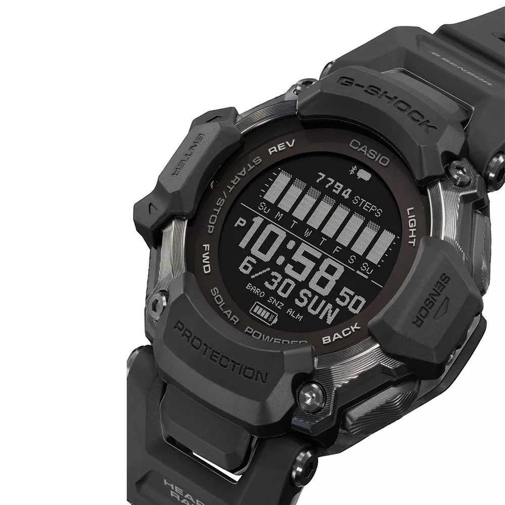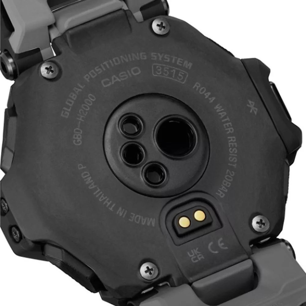 GBD-H2000 je sveobuhvatna nadogradja veoma popularanog GBD-H1000. Sada sadrži podršku za više sportova, ultra-pouzdanu solarnu energiju i novi poboljšani interfejs.GBD-H2000 ima novodizajnirano tanje kućište i narukvicu kreiranu od ekološki prihvatljive plastike od biomase – za udobno i lako nošenje.GBD-H2000 je opremljen sa šest senzora (monitor otkucaja srca, brojač koraka, žiroskop, pritisak sa visinomerom i barometrom, kompas, termometar) zajedno sa GPS-om.GBD-H2000 omogućava praćenje fizičke aktivnosti u realnom vremenu za aktivnosti: trčanje, hodanje po stazi, vožnja bicikom, plivanje , teretana i intervalni trening.Pored uobičajenih G-SHOCK odlika:otpornost na udarce i vodootpornost , GBD-H2000 obezbeđuju precizno merenje i praćenje za različite pokrete i vežbe. Pokreće ga POLAR®, optički senzor za merenje otkucaja srca radi na LED svetlu i meri sve promene u protoku krvi korisnika. Akcelerometar je tu da analizira pokrete i korake, dok je žiroskop dodat za snimanje informacija kao što su potezi i okreti tokom plivanja. Magnetni, pritisak i termo senzori su takođe integrisani da precizno detektuju promene u okruženju, zajedno sa praćenjem temperature i nadmorske visine/pritiska vazduha.