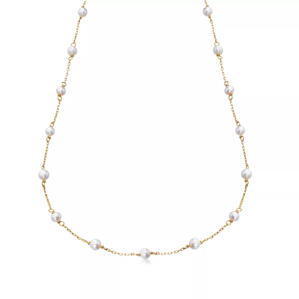 Ogrlica od 18k zlata sa malim kultivisanim biserima povezanim u elegantan lanac.