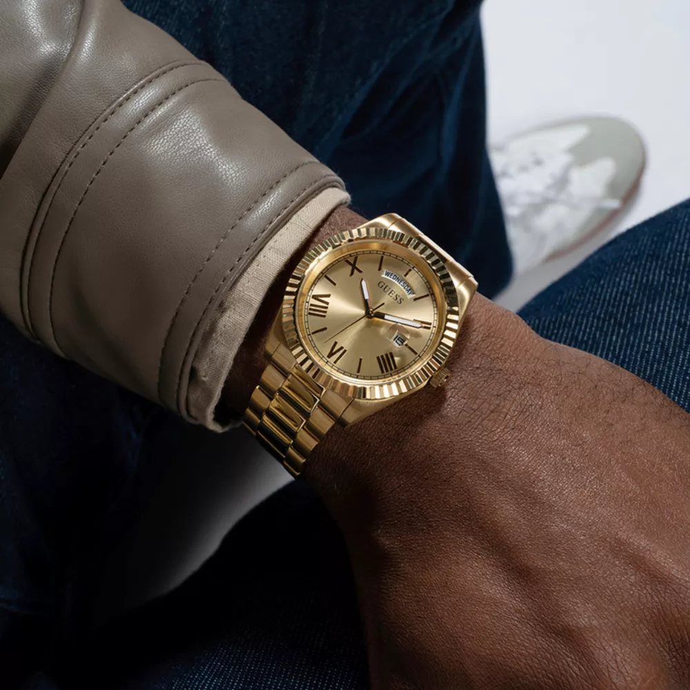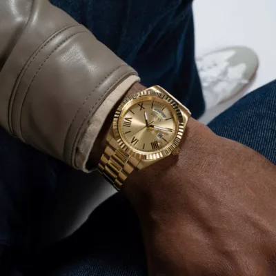 Klasičan model nikad ne izlazi iz mode. Izrezbaren okvir kućišta integrisan je sa čeličnom narukvicom od 3 linka. Sat poseduje displej za dan na poziciji 12h i displej za datum na poziciji 3h.