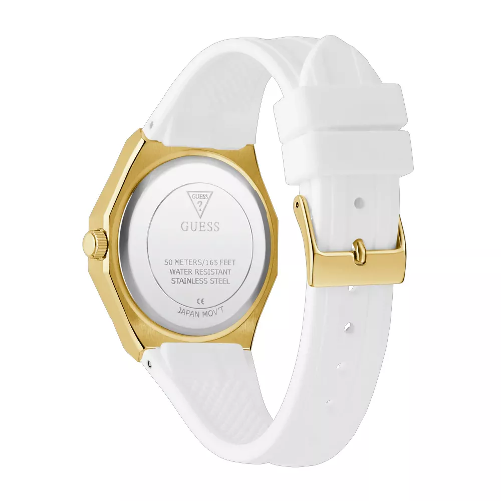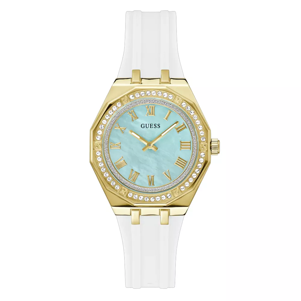 Istakni se sofisticiranošću i modnim smislom uz Guess ženski ručni sat koji nosi ime dostojno kraljice – i izgled koji to potvrđuje. Sa raskošnim oktagonalnim kućištem, sjajnim kristalima i elegantnim sedefnim brojčanikom, ovaj model donosi dozu luksuza u svaki tvoj dan.