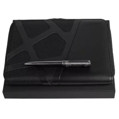Hugo Boss set pribora sastoji se iz poslovne fascikle i hemijske olovke vrhunske izrade i bezvremenskog dizajna.
