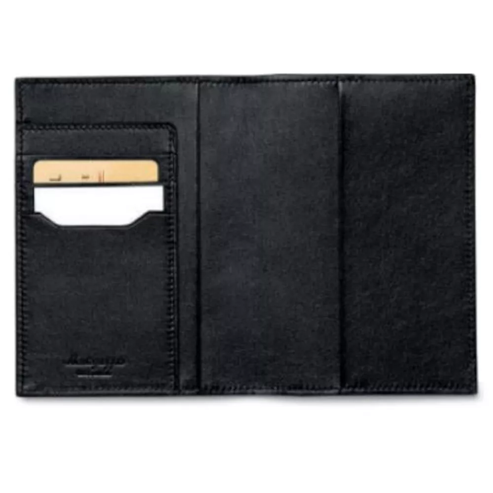 Ova tanka satenska kožna futrola iz Montegrappe osigurava sigurnost i diskreciju vaših putnih dokumenata. Ručno izrađena u Toskani od venecijanske teleće kože, sadrži tri praktična odeljka za bankovne ili identifikacione kartice. Kompaktna i elegantna, ova futrola je neophodan deo vašeg putnog pribora i može da primi pasoše veličine do 138 x 98 mm.