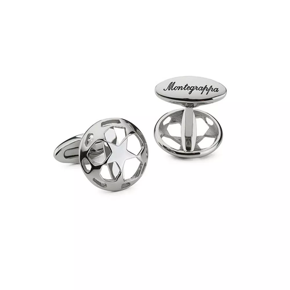 Montegrappa Uefa Champions League manžetne od nerđajućeg čelika u boji srebra. Komadi od neizmerne lepote koji predstavljaju prepoznatljiv dizajn zvezda koje krase loptu UEFA Lige šampiona. Na samim manžetnama je istaknut logo brenda kao potvrda o autentičnosti i kvalitetu.
