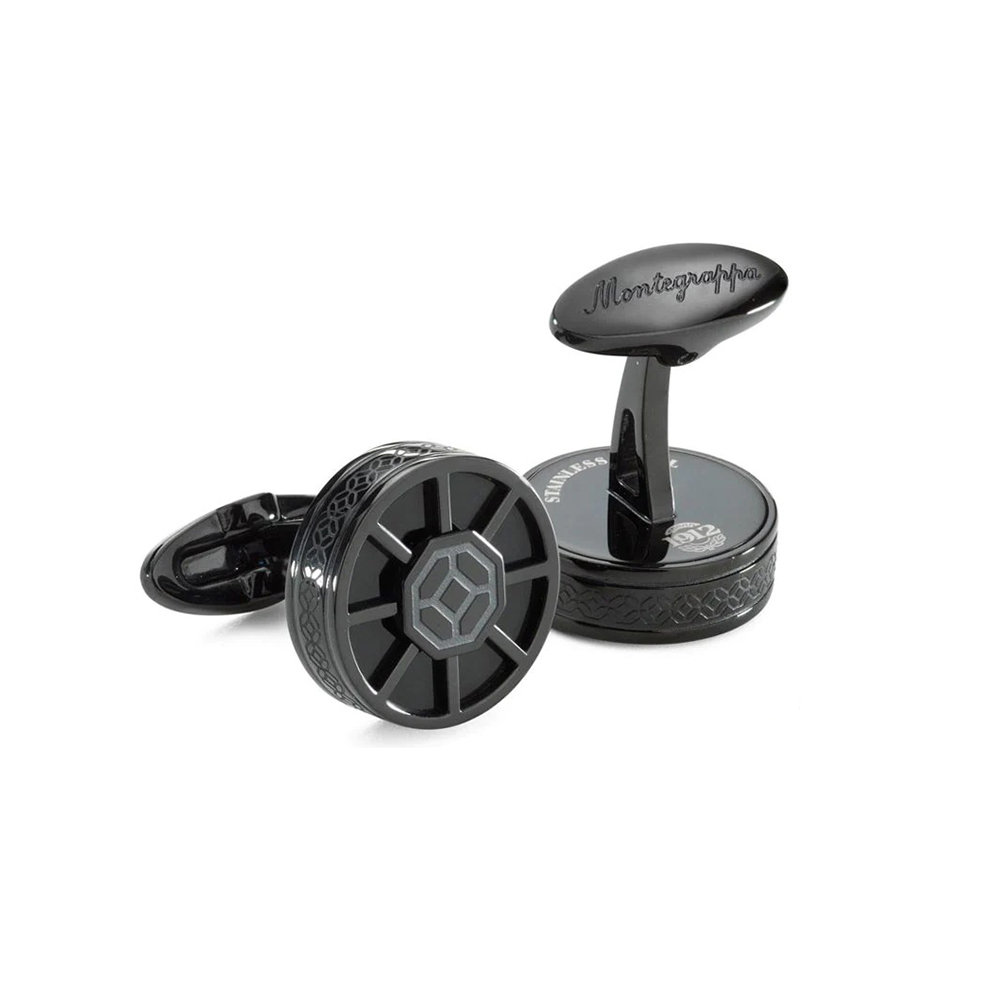 Luksuzne i sofisisticirane muške manžetne napravljene od nerđajućeg čelika sa detaljima u crnoj boji.Na samim manžetnama je istaknut logo brenda kao potvrda o autentičnosti i kvalitetu.