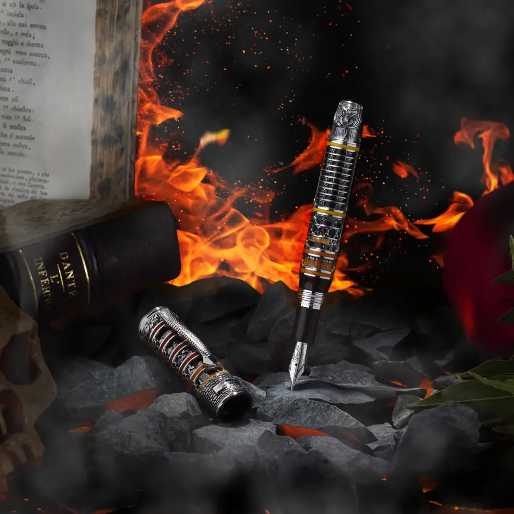 Montegrappa odaje počast Danteu 700 godina nakon njegove smrti. Prepoznavanje i odbacivanje greha je centralna premisa "Inferna" uvodnog toma Danteove "Božanstvene komedije". Pažljivo livenje voska ilustruje putovanje vrhunskog pesnika kroz zagrobni život sa detaljima o nedelima i kaznama u svakom od devet paklenih ponora. Posebno je obraćena pažnja na detalje koji opisuju Danteovo putovanje od misteriozne šume koja je simbolisana na samom vrhu poklopca, do pakla. Luciferov šiljati rep viri iz poklopca i formira džepnji klip. Precizno i detaljno oslikano je sedam smrtnih grehova; požuda, proždrljivost, pohlepa i gnev na poklopcu, lenjost, nasilje, prevara i izdaja na nalivperu. Prelivanje emajliranih boja od jarko crvene na poklopcu preko vatreno narandžaste na sredini do žute na kraju oslikavaju devet krugova pakla.