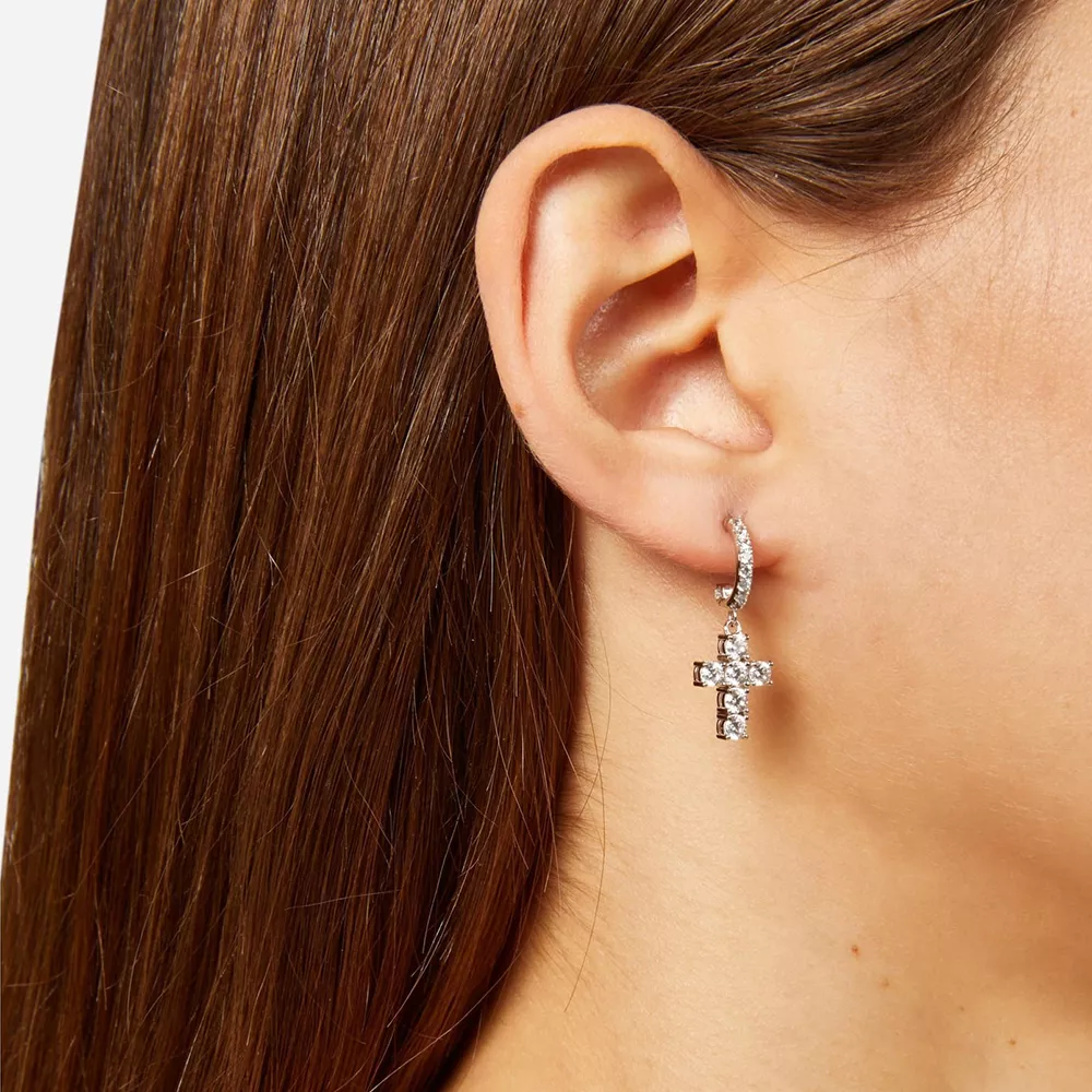Osvojite srca svih sa Chiara Ferragni ženskim minđušama, sa priveskom u obliku krsta sa kristalima, koje će dodati dozu romantične elegancije vašem stilu.