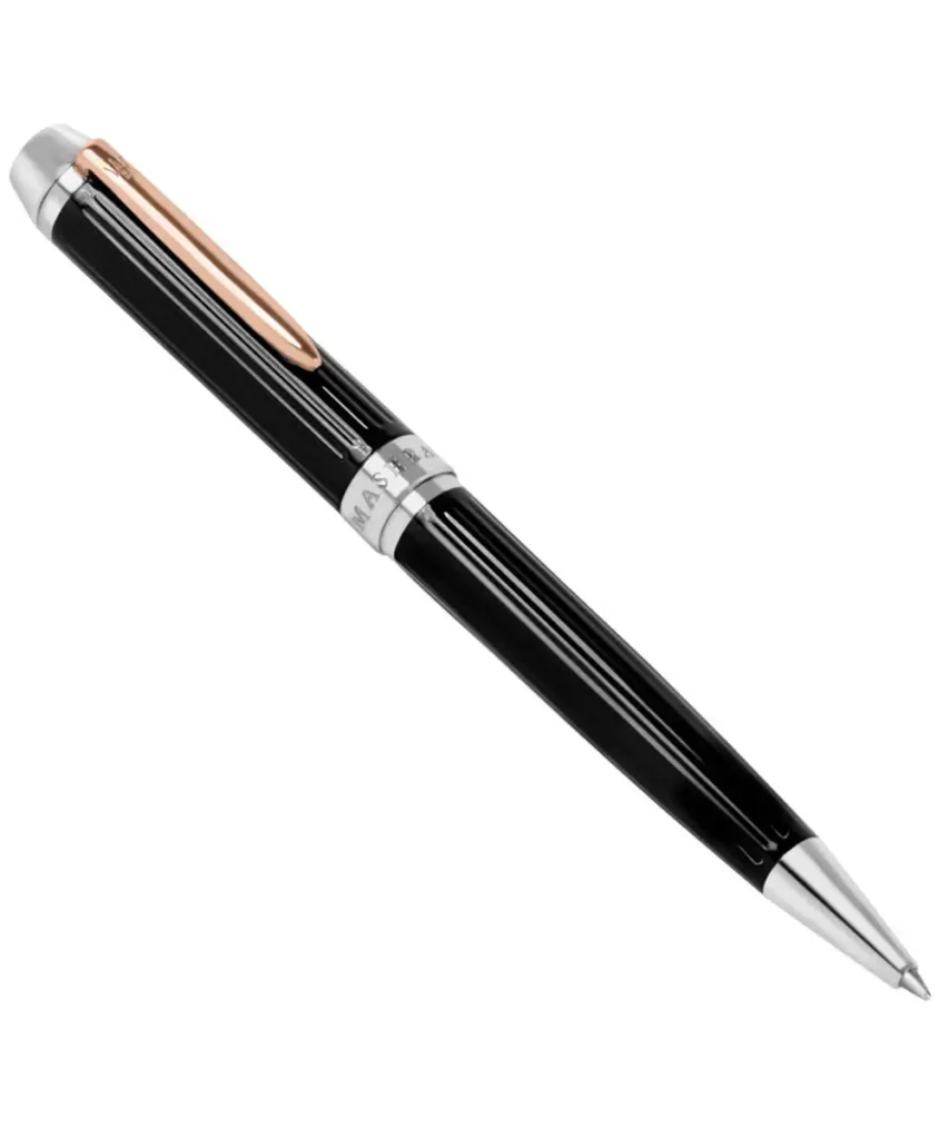 Maserati hemijska olovka u kombinaciji tri boje, crne, srebrne i boje roze zlata.