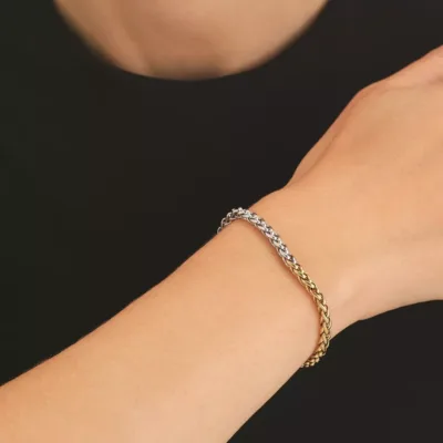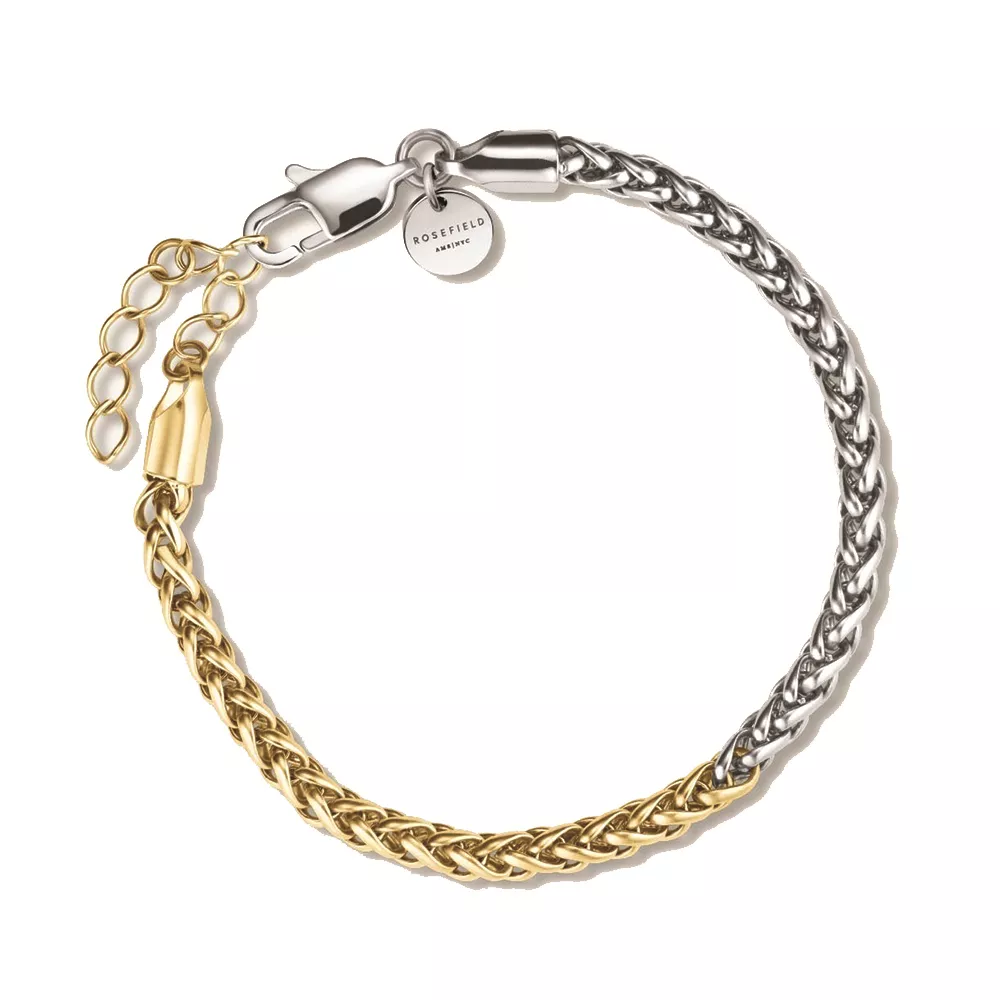 Rosefield ženska narukvica od nerđajućeg čelika u kombinaciji srebrne i zlatne boje. Dužina 19,5cm (16,5cm + 3cm)