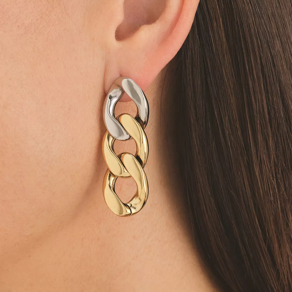 Viseće Rosefield ženske minđuše u boji srebra i žutog zlata.