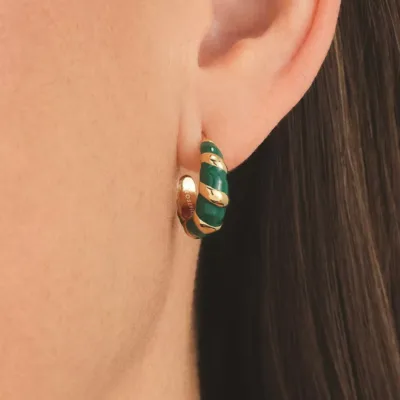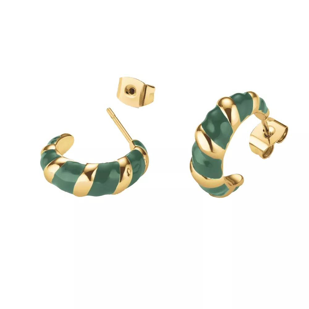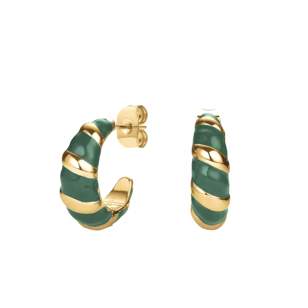Rosefield ženske alka minđuše iz kolekcije Emerald u zlatnoj boji sa emajlom u smaragdno zelenoj boji. Izrađene su od kombijacije emajla i nerđajućeg čelika, dužine 17mm
