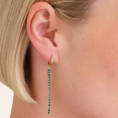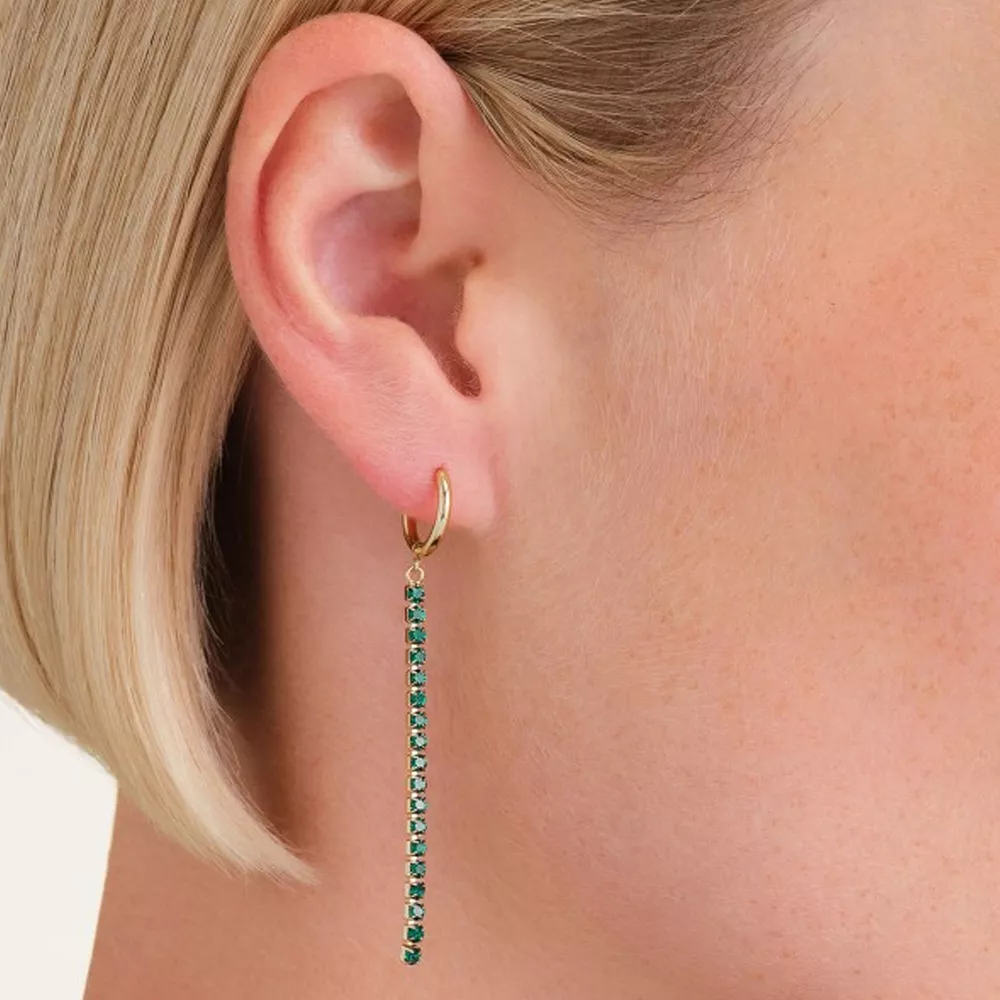 Dodajte dašak sofisticiranosti i elegancije sa dugim Rosefield ženskim minđušama sa kristalima u zelenoj boji. Ove moderne minđuše savršeno kombinuju minimalistički dizajn i luksuzne detalje.