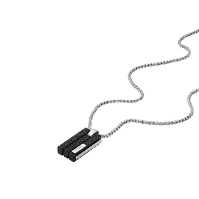 Muška ogrlica brenda Fossil od nerđajućeg čelika sa priveskom u crnoj boji.