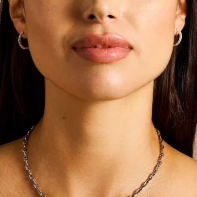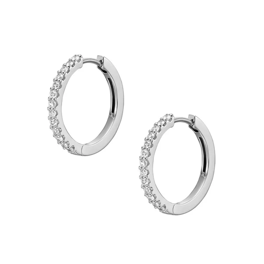 Fossil srebrne alkice od nerđajućeg čelika sa cirkonima. Dimenzije: 11.2×10.6mm