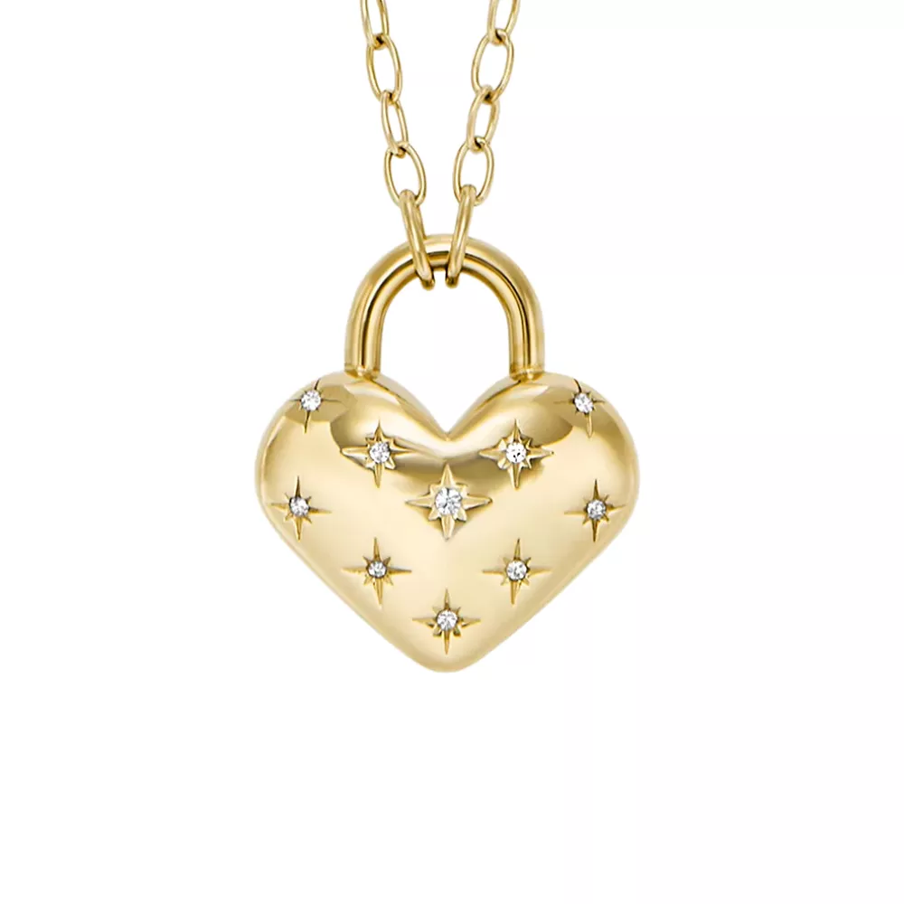 Sadie All My Love kolekcija donosi romantičan sjaj u vaš stil. Ova zlatno-tonirana ogrlica ističe se priveskom u obliku srca, ukrašenim blistavim staklenim kamenčićima. Upotpunjena lančićem od nerđajućeg čelika i sigurnim kopčanjem na karabin, savršen je dodatak za svaki dan ili posebne prilike.