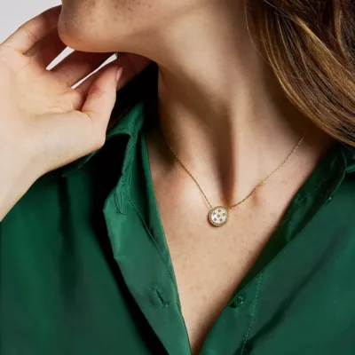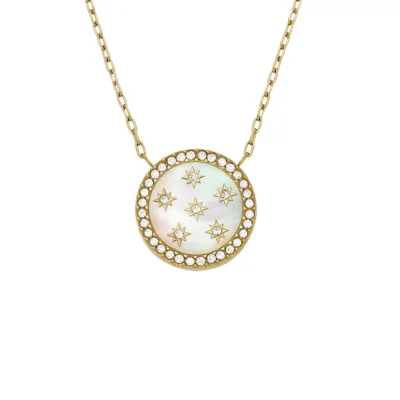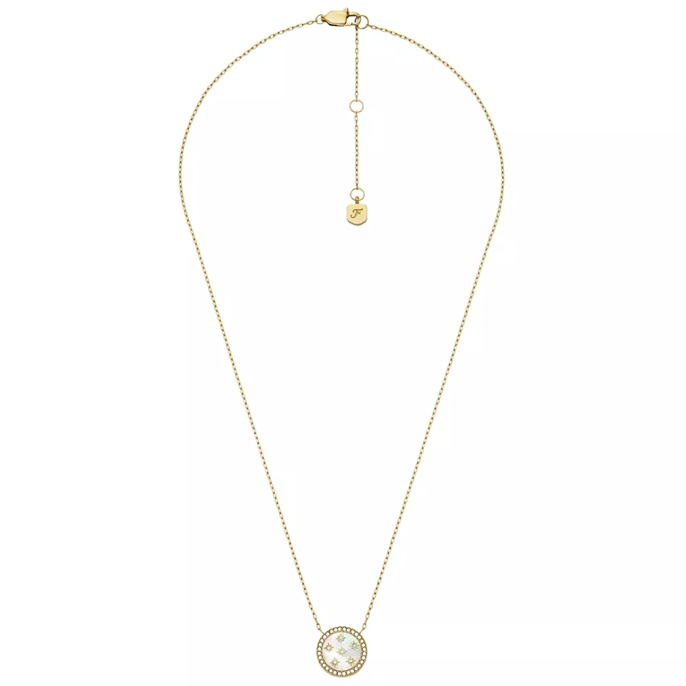 Rafinirana i blistava, naša kolekcija Classic Mother of Pearl donosi prirodnu eleganciju bez napora. Ova Fossil ogrlica u zlatnom tonu ističe se sjajnim priveskom od sedefa koji prelepo reflektuje svetlost, savršenim za podizanje svakodnevnih kombinacija. Fini lančić sa kopčom u vidu karabinera čini ovaj komad svestranim aksesoarom koji ćete rado nositi sezonama unazad.