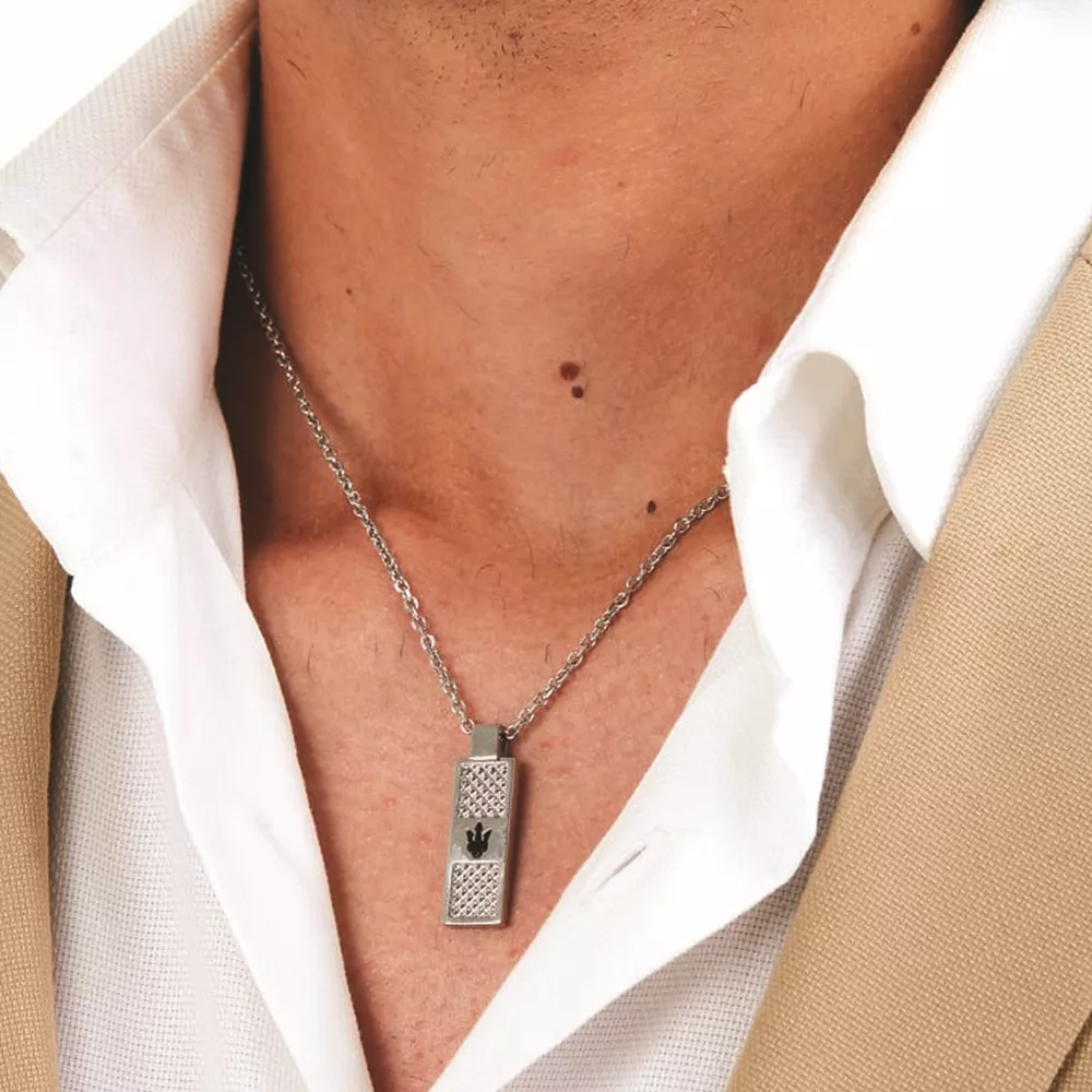 Maserati muška ogrlica iz kolekcije Iconic izrađena od nerđajućeg čelika u srebrnoj boji, dužine 50cm (45cm + 5cm)