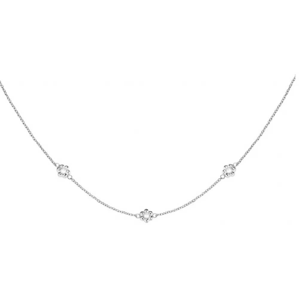 Ogrlica od nerđajućeg čelika u boji srebra sa tri cveta.