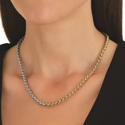 Rosefied ženska ogrlica iz kolekcije Duotone od nerđajućeg čelika u kombinaciji srebrne i boje žutog zlata. Dužina lanca 49cm (45cm + 4cm)
