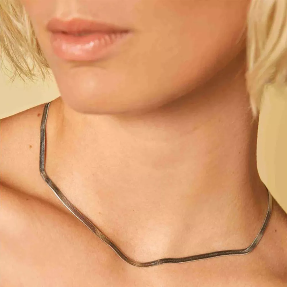 Ženska ogrlica brenda Rosefield od nerđajućeg čelika srebrne boje.