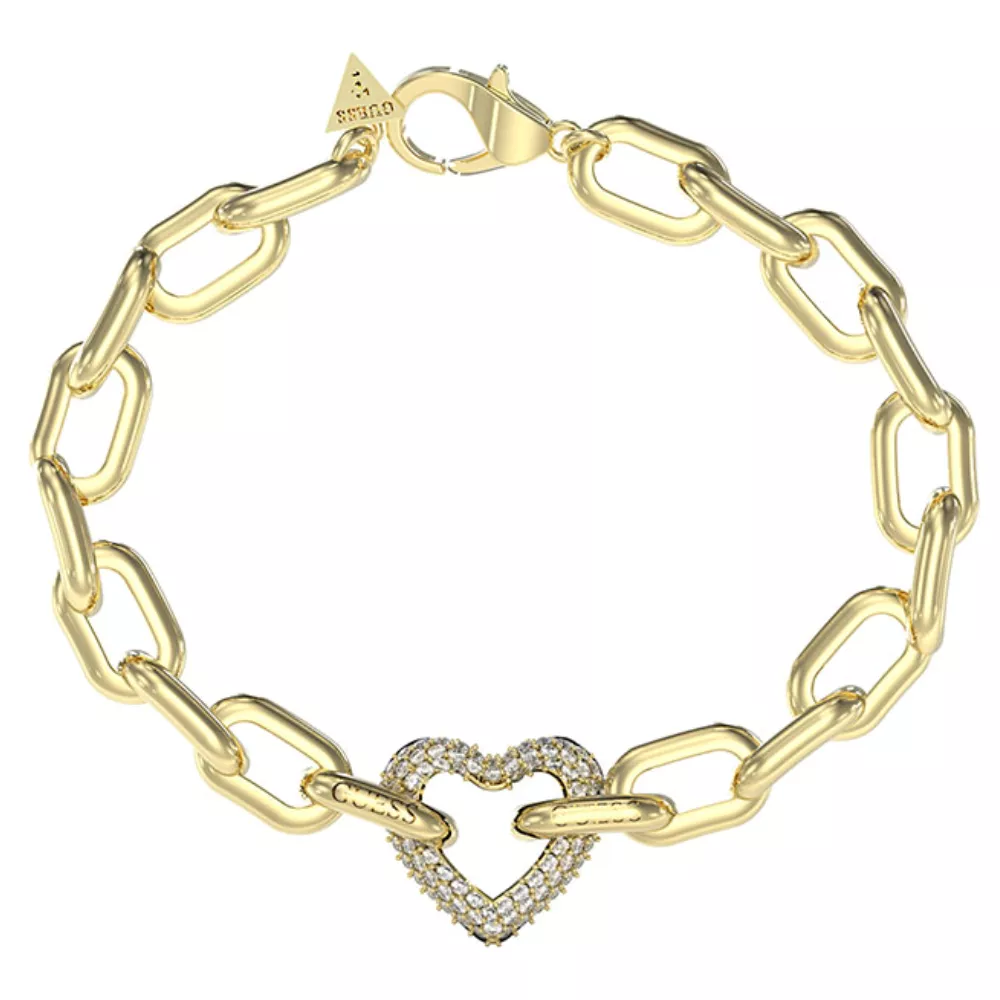 Ova prelepa narukvica iz kolekcije Beloved brenda Guess dolazi u boji žutog zlata i ukrašena je priveskom u obliku srca, koje je dodatno ukrašeno belim cirkonima. Delikatan dizajn ove narukvice čini je savršenim izborom za sve koji žele da unesu dozu elegancije i romantizma u svoj svakodnevni stil. Idealna je kao poklon ili kao modni dodatak za posebne prilike.