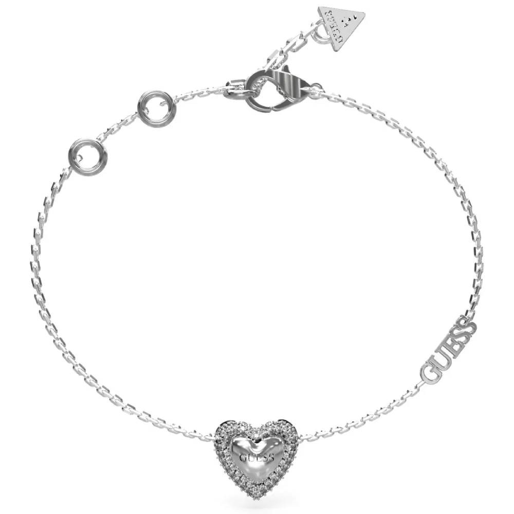Narukvica za žene iz kolekcije Guess Beloved. Ovaj elegantan komad nakita izrađen je od nerđajućeg čelika u boji žutog zlata. Ukrašena je srcem sa pavé kristalima širine 13 mm, a lanac je fin i ženstven. Veličina nakita: S, odnosno 14,6cm + 3,8cm. Savršen dodatak koji unosi dozu romantike i sjaja u svaki stil.