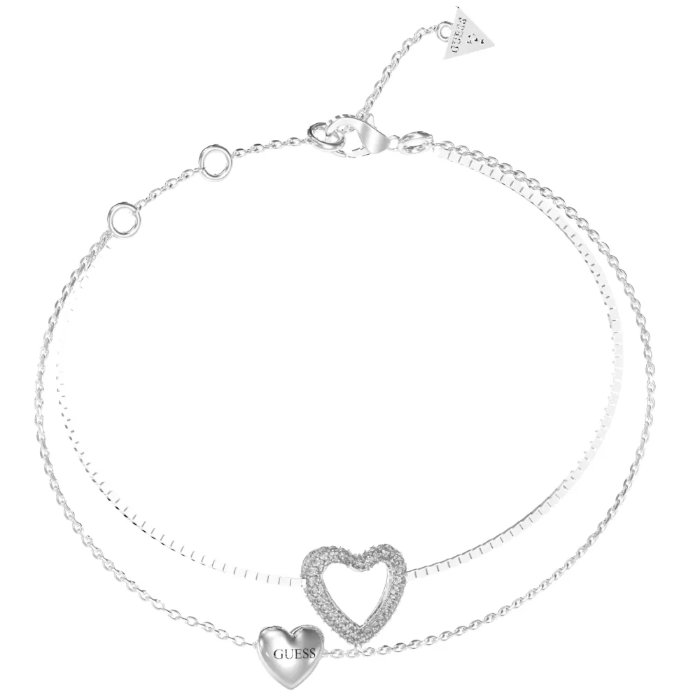 Ova elegantna dupla narukvica iz kolekcije Beloved od Guess-a izrađena je od čelika u boji srebra i ukrašena je priveskom u obliku srca. Nudi sofisticirani, ali i jednostavan dizajn koji se savršeno uklapa u različite stilove. Savršen je dodatak za svaki dan ili posebne prilike, pružajući nežan i ženstven izgled.