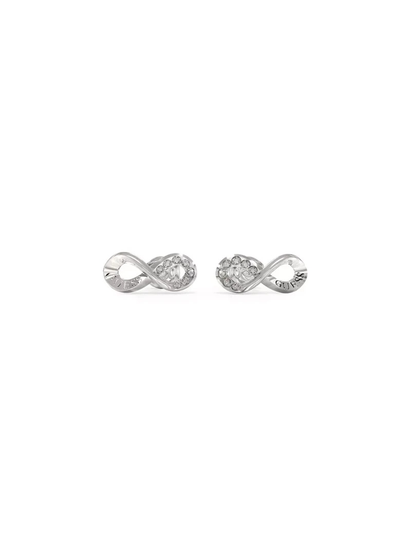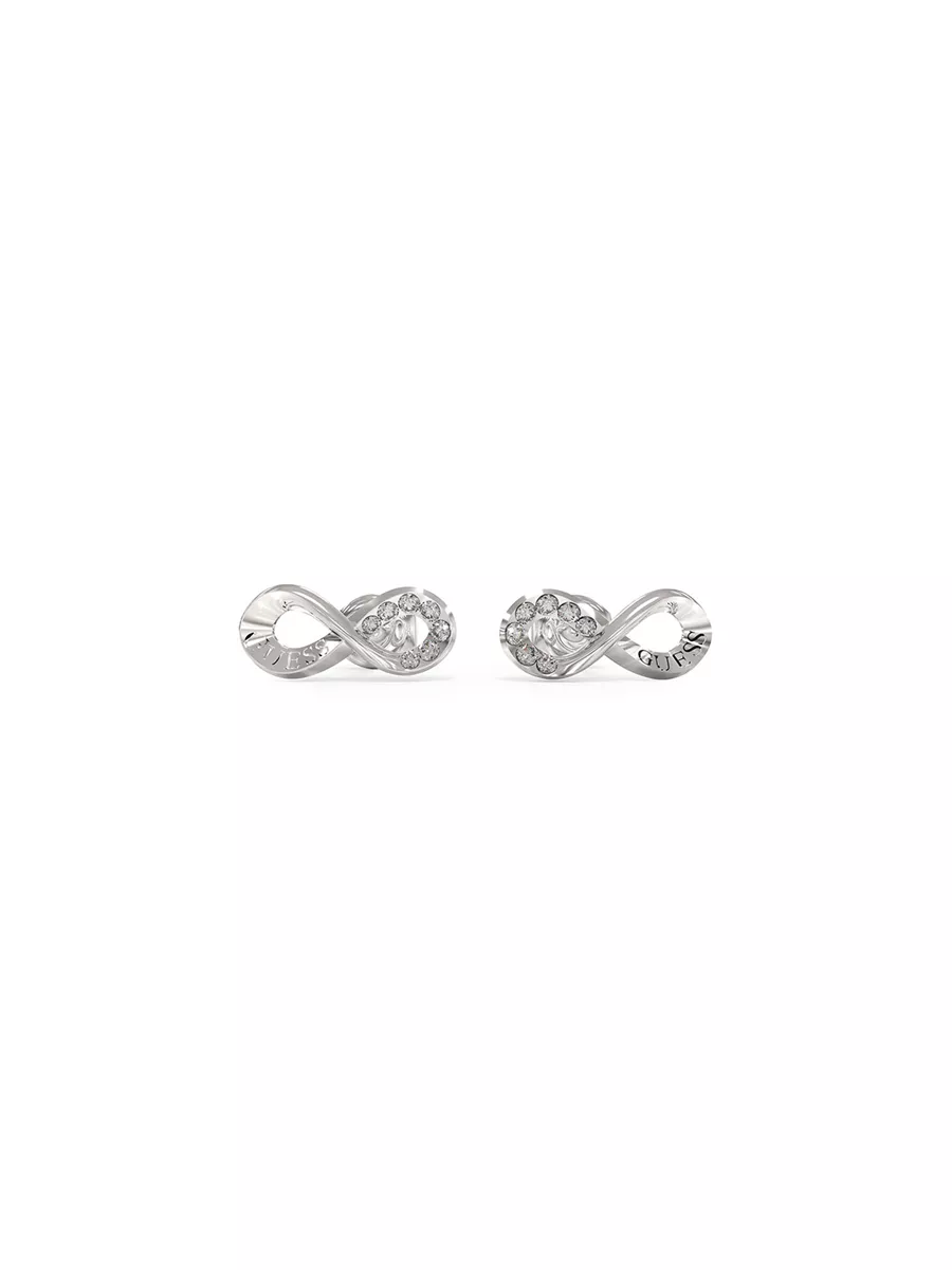 Guess minđuše ENDLESS DREAM od nerđajućeg čelika u boji srebra u obliku znaka beskonačnosti sa cirkonima.