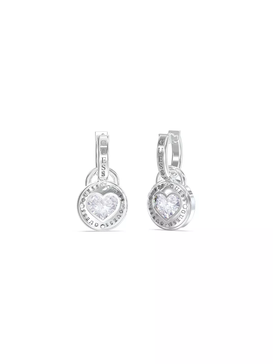 Guess minđuše – alke od nerđajućeg čelika u boji srebra; mala alka i viseći privezak: krug sa cirkonom u obliku srca.