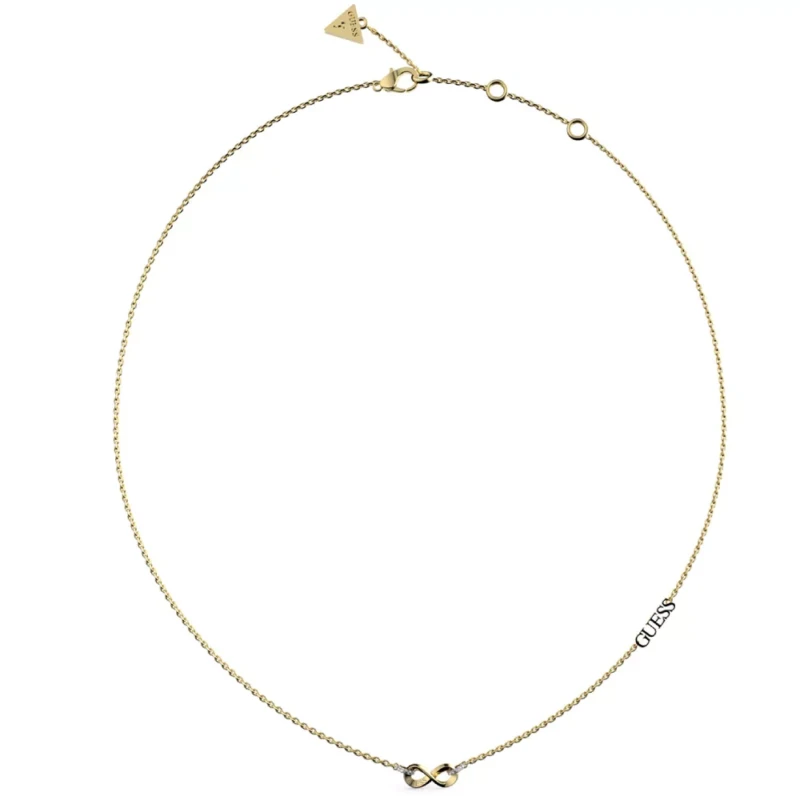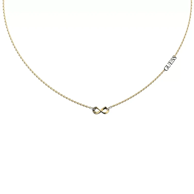 Guess ogrlica od nerđajućeg čelika u boji žutog zlata sa detaljem: znak beskonačnosti sa cirkonima.