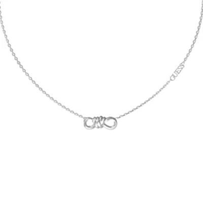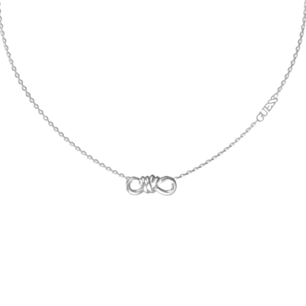 Guess tanka ogrlica modern love od nerđajućeg čelika u boji srebra sa centralnim detaljem: čvor