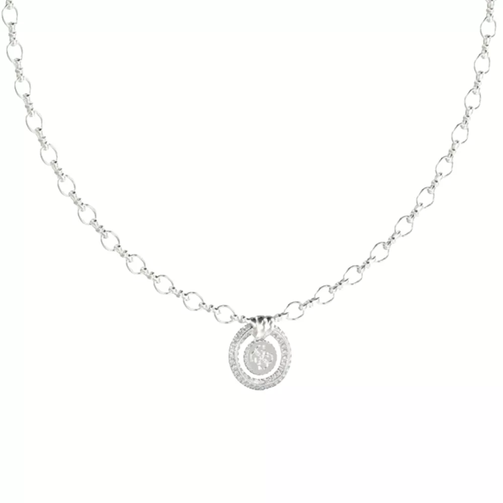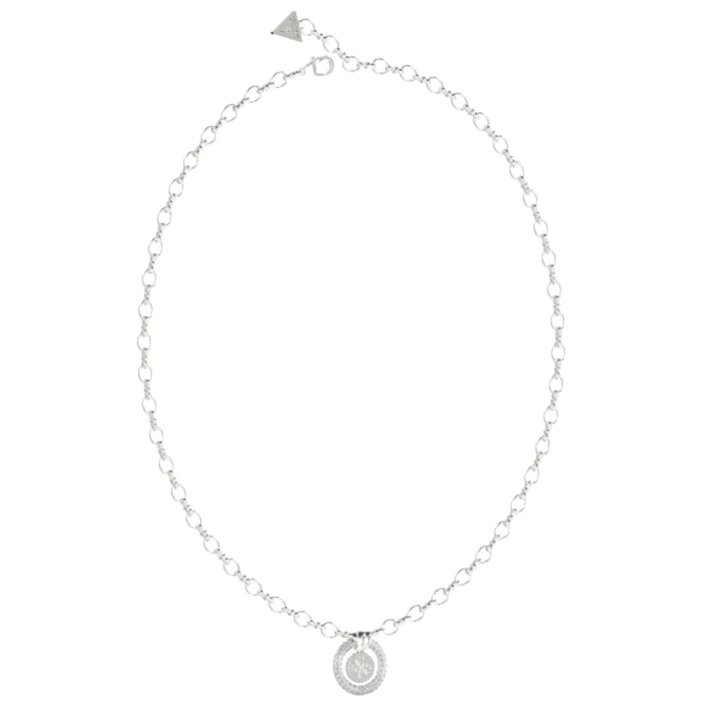 Guess ogrlica knot you od nerđajućeg čelika u boji srebra, privezak: krug sa cirkonima i 4G logo