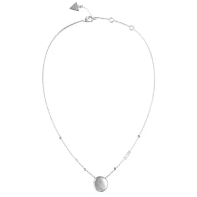 Guess ženska tanka ogrlica od nerđajućeg čelika u boji srebra sa sitnim cirkonima i priveskom.