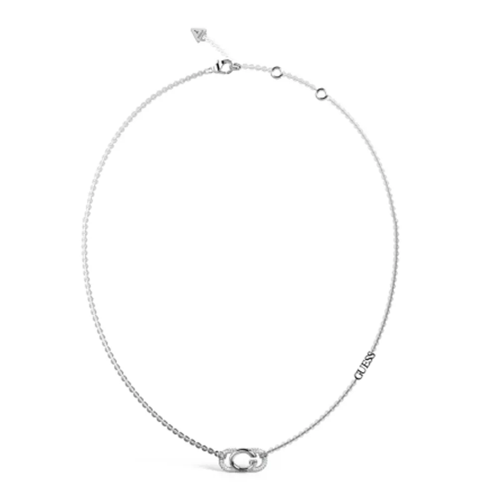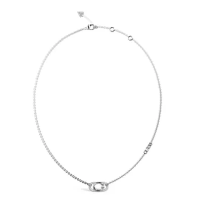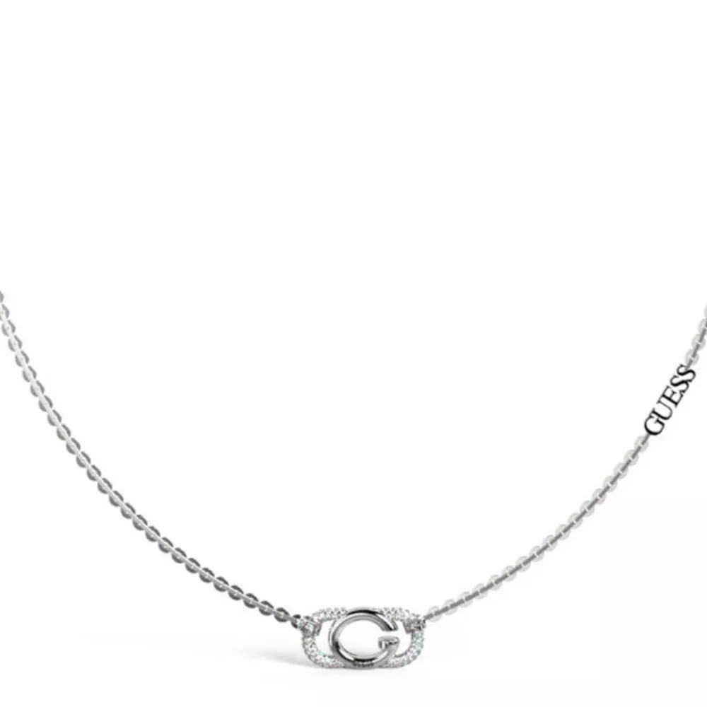 Guess ženska ogrlica je elegantan dodatak koji privlači poglede. Ukrašena svetlucavim kristalima, lepo reflektuje svetlost. Lagani dizajn čini je udobnom za nošenje i savršeno se uklapa uz svaki stil.sa priveskom kružnog oblika ispunjenog sedefom i kristalima.