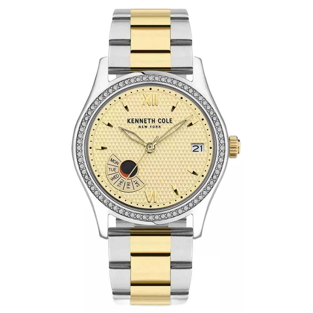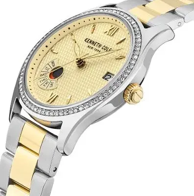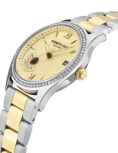 Elegantan i ženstven model brenda Kenneth Cole poseduje diskretne kristale smeštene na obodu kućišta i brojčanik zlatne boje. Lepo se uklapa uz svakodnevne, ali i posebne prilike.