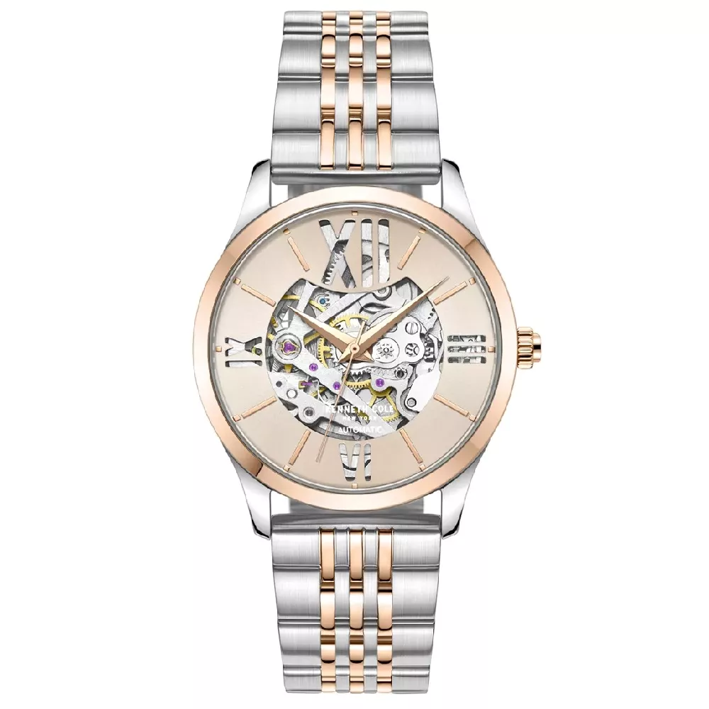 Ženski ručni sat brenda Kenneth Cole sa skeletnim brojčanikom i automatik mehanizmom. Narukvica je izrađena od hirurškog čelika kombinacije boja srebra i roze zlata. Sofisticiran, ovaj model će vašoj rutini dodati dašak šika.