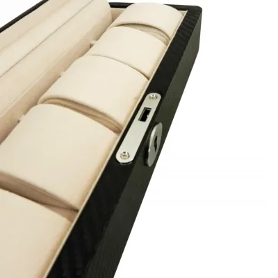 Spoljašnost: crna karbon vlakna i mat veštačka koža Unutrašnjost: Somot u kamel boji Namena: za odlaganje 2 sata